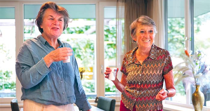 Martien Briët, voorzitter van de cliëntenraad: “Als ik zelf ooit zorg nodig heb, wil ik ook graag dat die goed is. Je kunt het verschil maken en oude mensen zijn echt hartstikke leuk. In De Open Hof woont iemand die drijvende tuinen heeft ontworpen, in het Flevohuis woont een operazangeres. Daar ga ik dan lekker naar zitten luisteren. Je hoort vaak de prachtigste verhalen.”